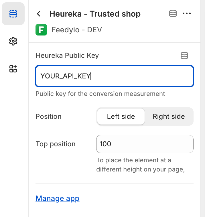 To find your Public API key, go to your Heureka account settings - see the screenshot below for reference