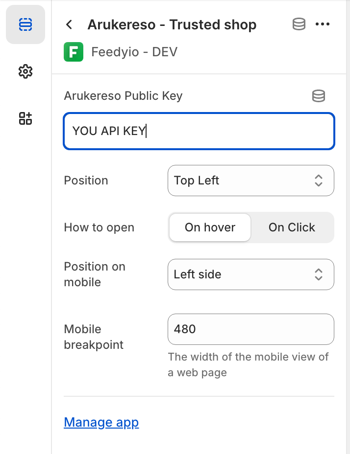 Can't find the app block? Ensure the Feedyio app is installed and up to date. Try refreshing the Theme Editor.